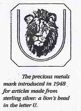 for the marking of precious metals. They consisted of the letter U encircling the head of a Springbok for articles made of gold, and the head of a lion for articles made of silver. No mention was