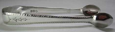 The tongs bear a clear hallmark and maker's mark suggesting they